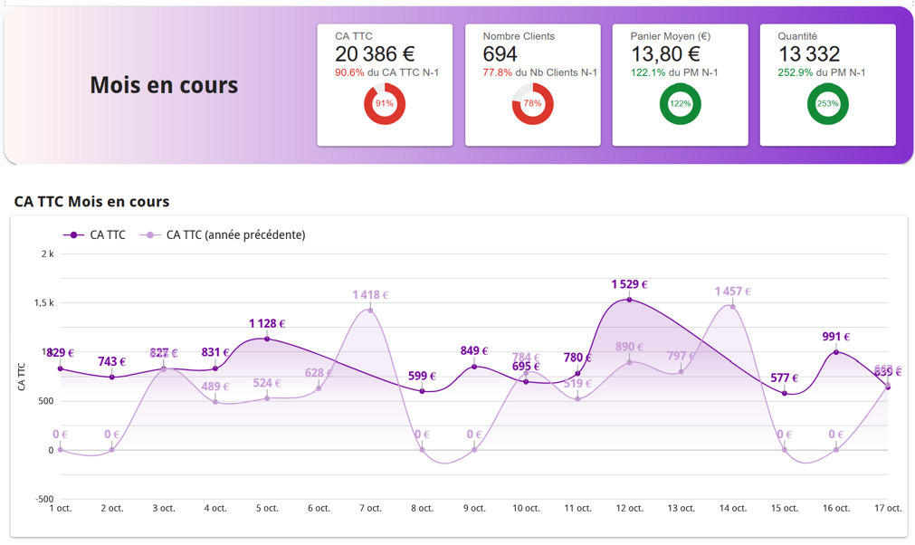 Comme le tableau de bord d'une voiture, il possède des indicateurs clés (chiffres, courbes, graphiques, etc.) qui vous montre en temps réel où vous en êtes et