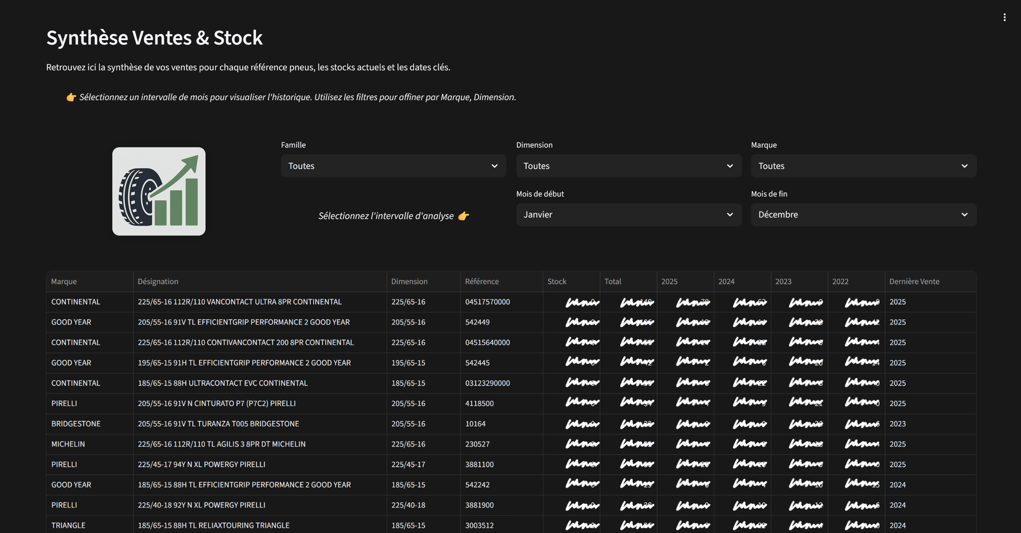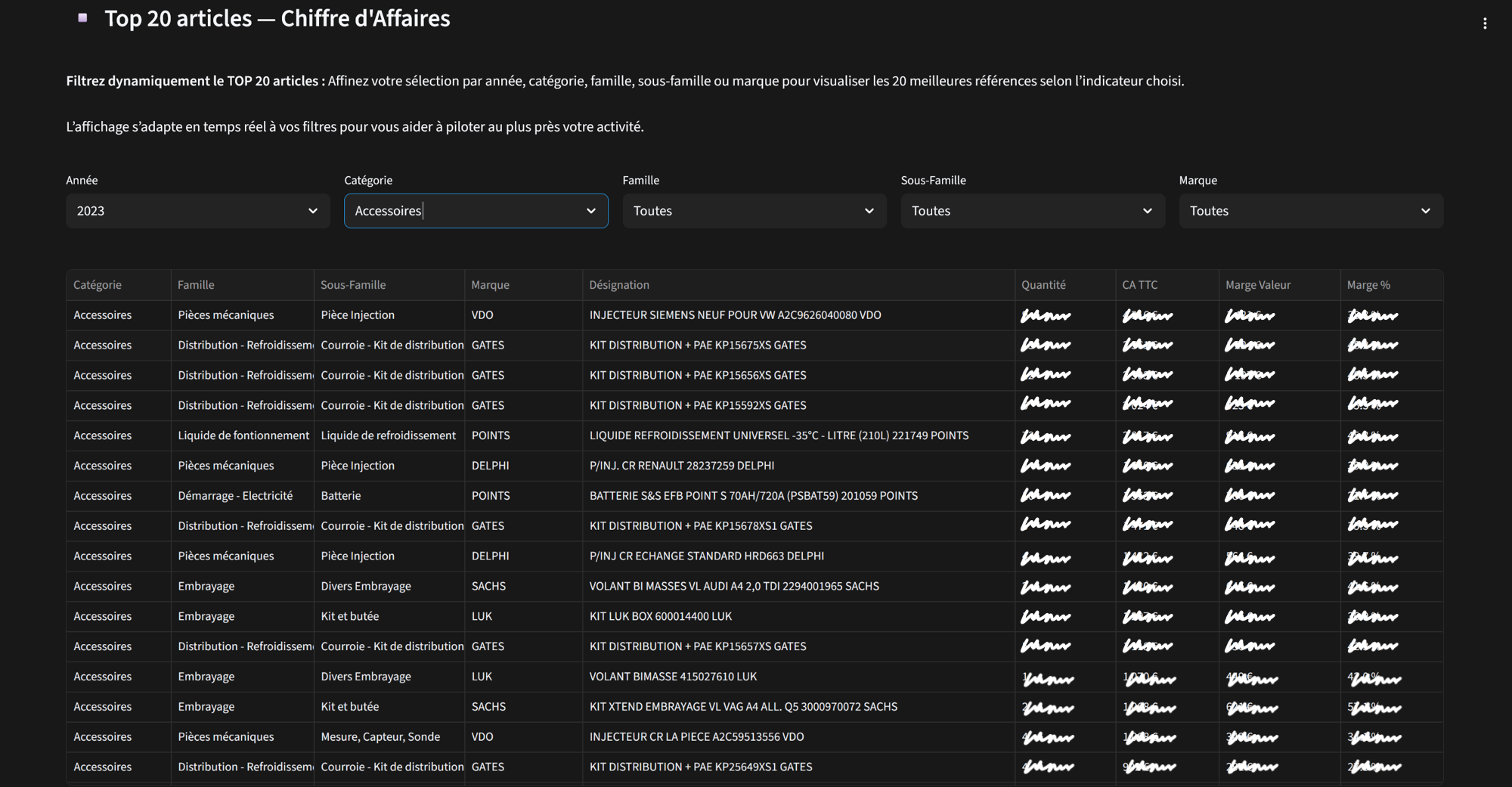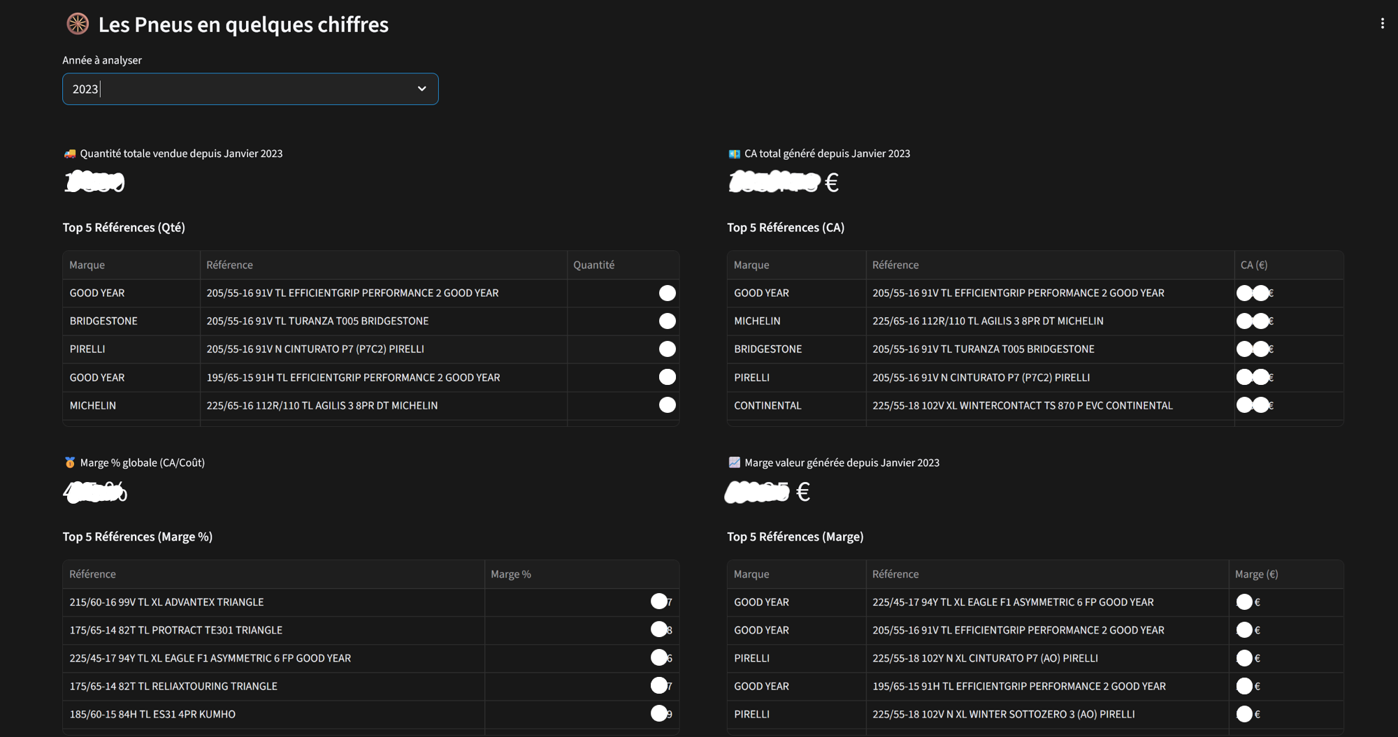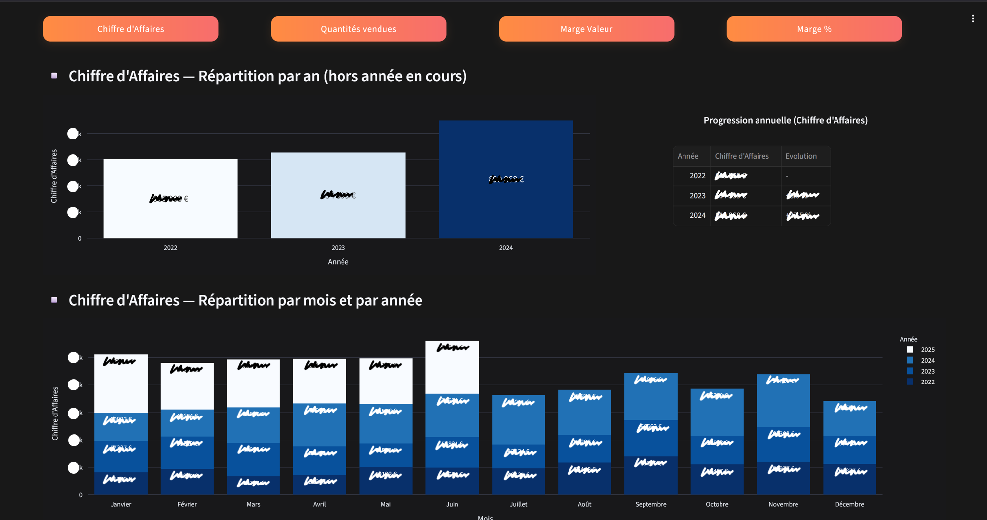 Organisation des fichiers et création d’un tableau de bord pour suivre ventes, marges, stock et clients en temps réel.